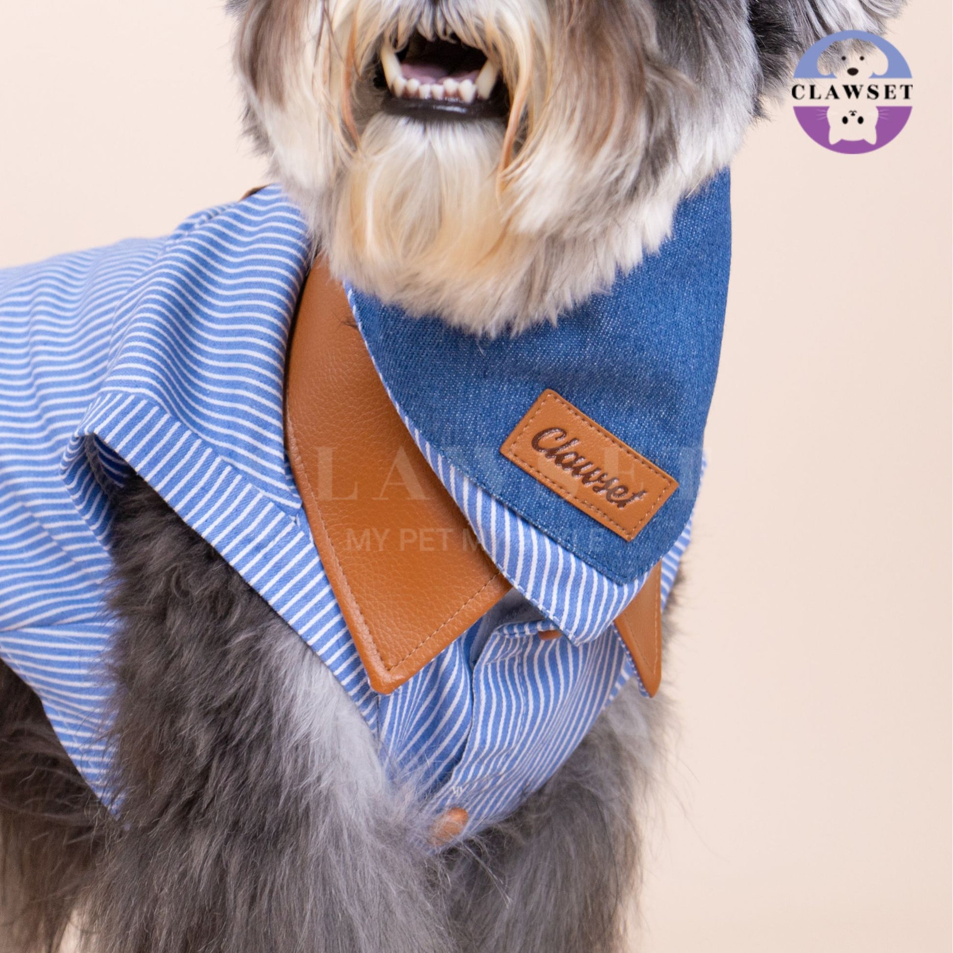 Clawset - Denim Collection - Pet Scarf - Stripe Blue
