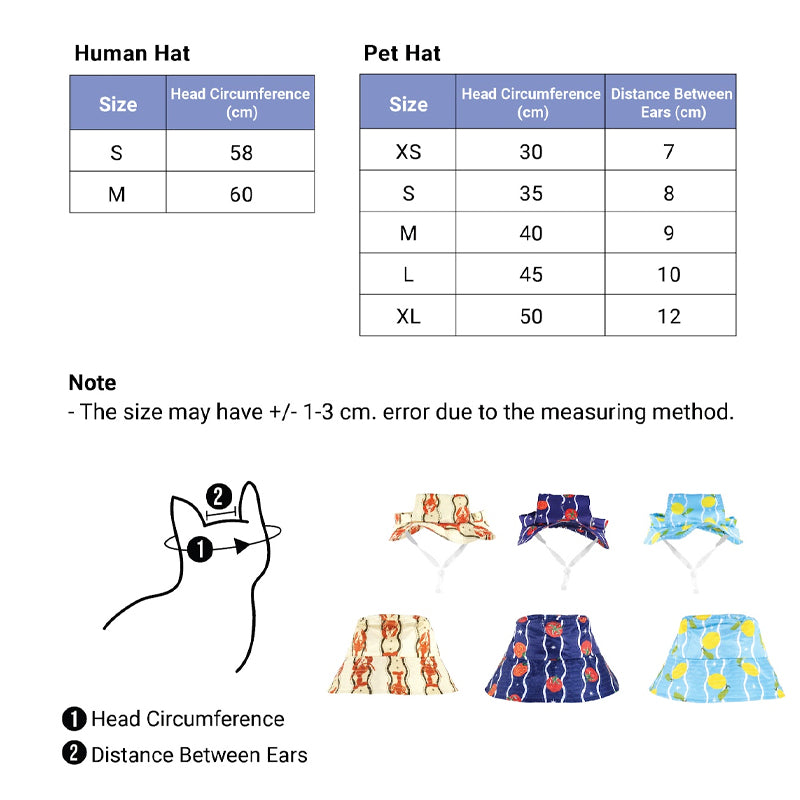 β Perhatian: Ukuran topi untuk Pawrents (manusia) dapat dilihat di tabel Human Hat pada gambar