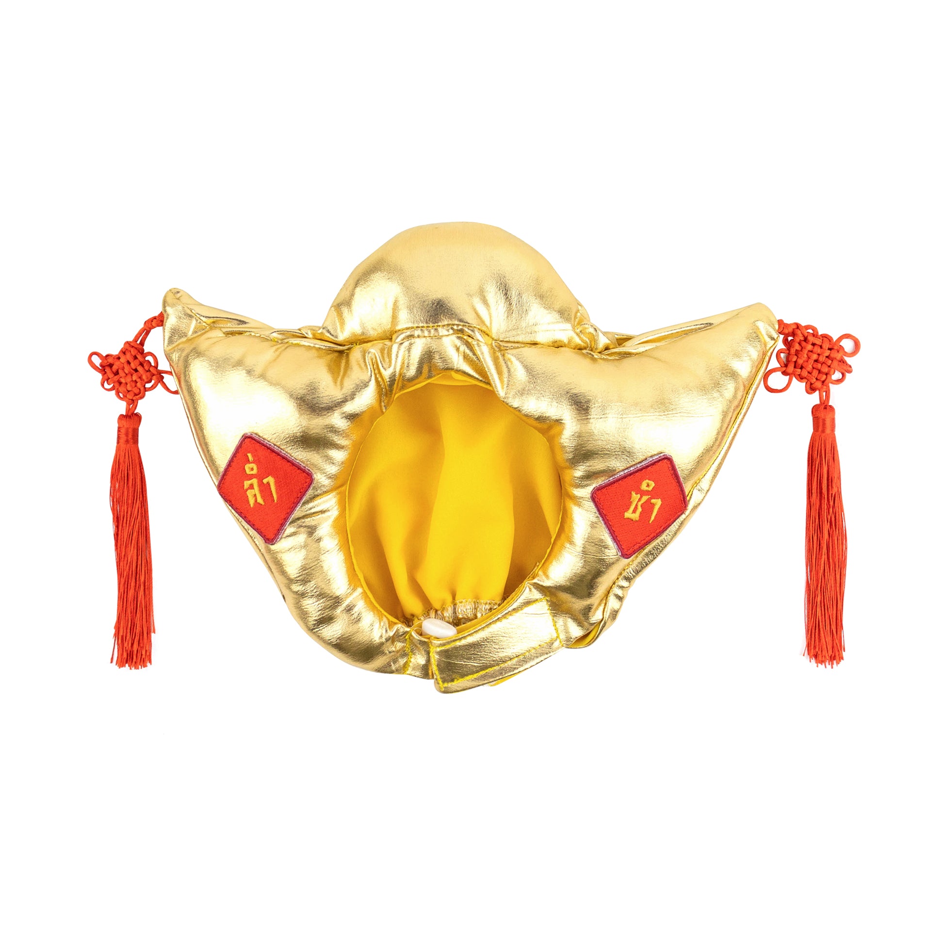 Kostum yang unik 🧧✨: Dirancang khusus memiliki design yang unik menyerupai uang Emas kekaisaran untuk hiasan kepala anabul. Dengan menggunakan kostum ini diharapkan anabul dan Pawrent mendapatkan keberuntungan dan kemakmuran yang berlimpah.