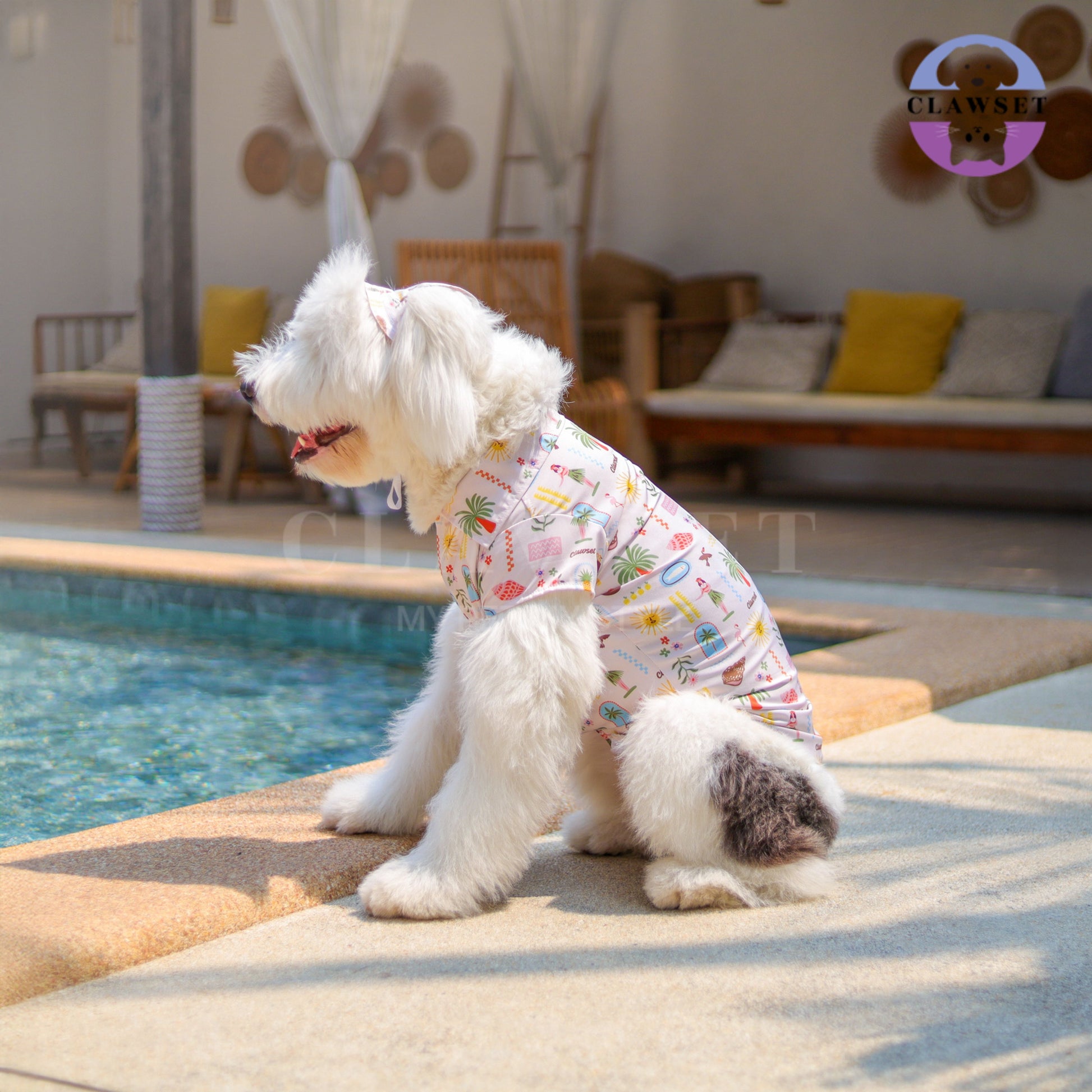 Clawset - Pet Bucket Hat (Topi Anjing & Kucing) - Aloha Summer - Sand Cream