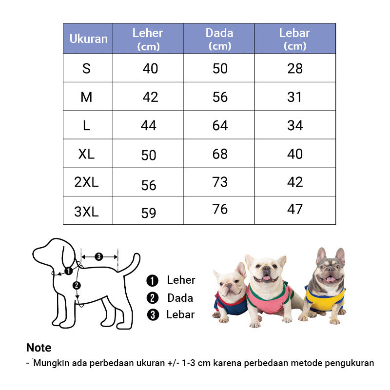 Terbuat dari 100% katun yang dirancang khusus untuk bentuk badan bulldog, pug, frenchie yang bertubuh lebar dan berkaki pendek mereka. Cocok untuk bersantai, pergi ke taman, pantai, atau hanya menikmati hari yang cerah di rumah.
